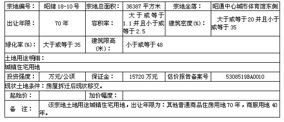 1.該宗國(guó)有建設(shè)用地使用權(quán)由昭陽(yáng)區(qū)土地儲(chǔ)備交易中心委托昭通華龍拍賣(mài)有限公司拍賣(mài)。