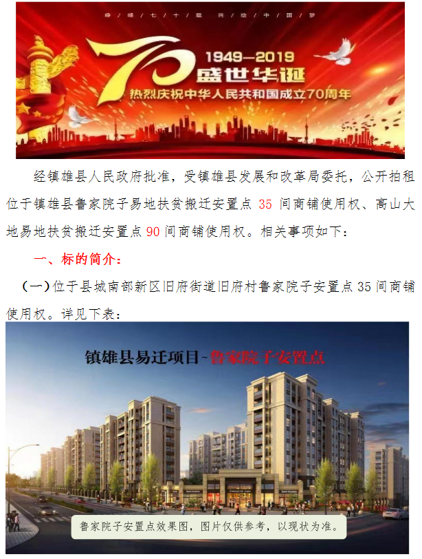 鎮(zhèn)雄縣易地扶貧搬遷魯家院子安置點、高山大地安置商鋪使用權(quán)拍租公告