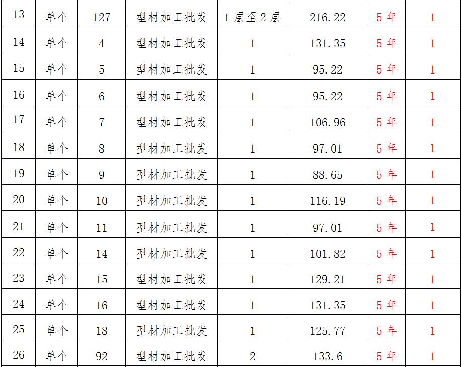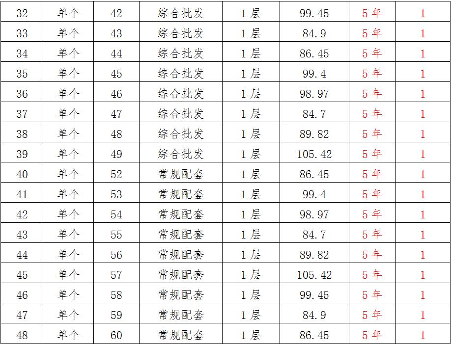 (一)拍租位于鎮(zhèn)雄縣南臺街道呢嚕坪安置點7棟獨立商鋪使用權(quán)。以棟為單位拍租。詳見下表: