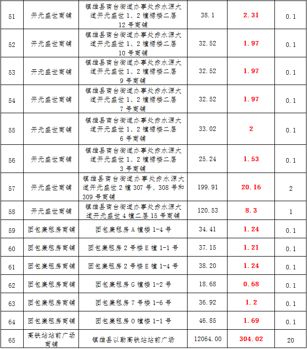 (一)拍租鎮(zhèn)雄發(fā)展集團(tuán)有限公司國(guó)有門面3年期使用權(quán),詳見下表: